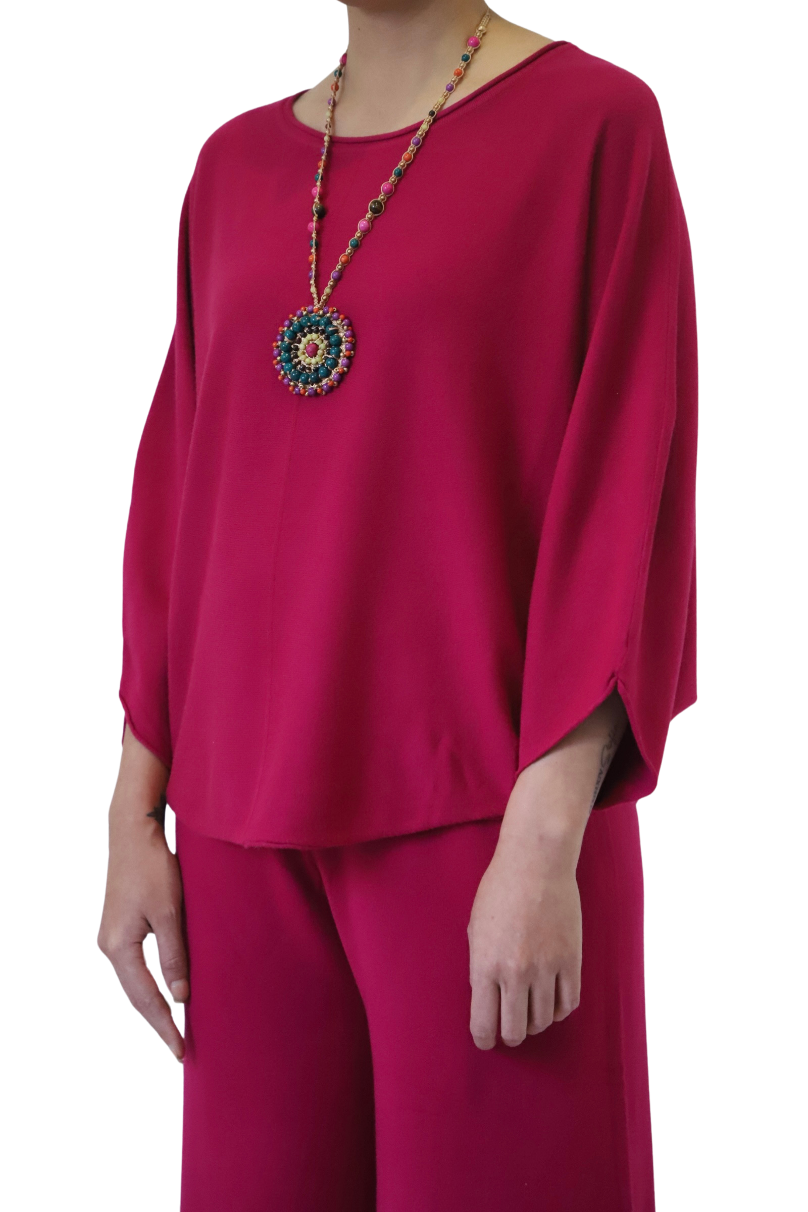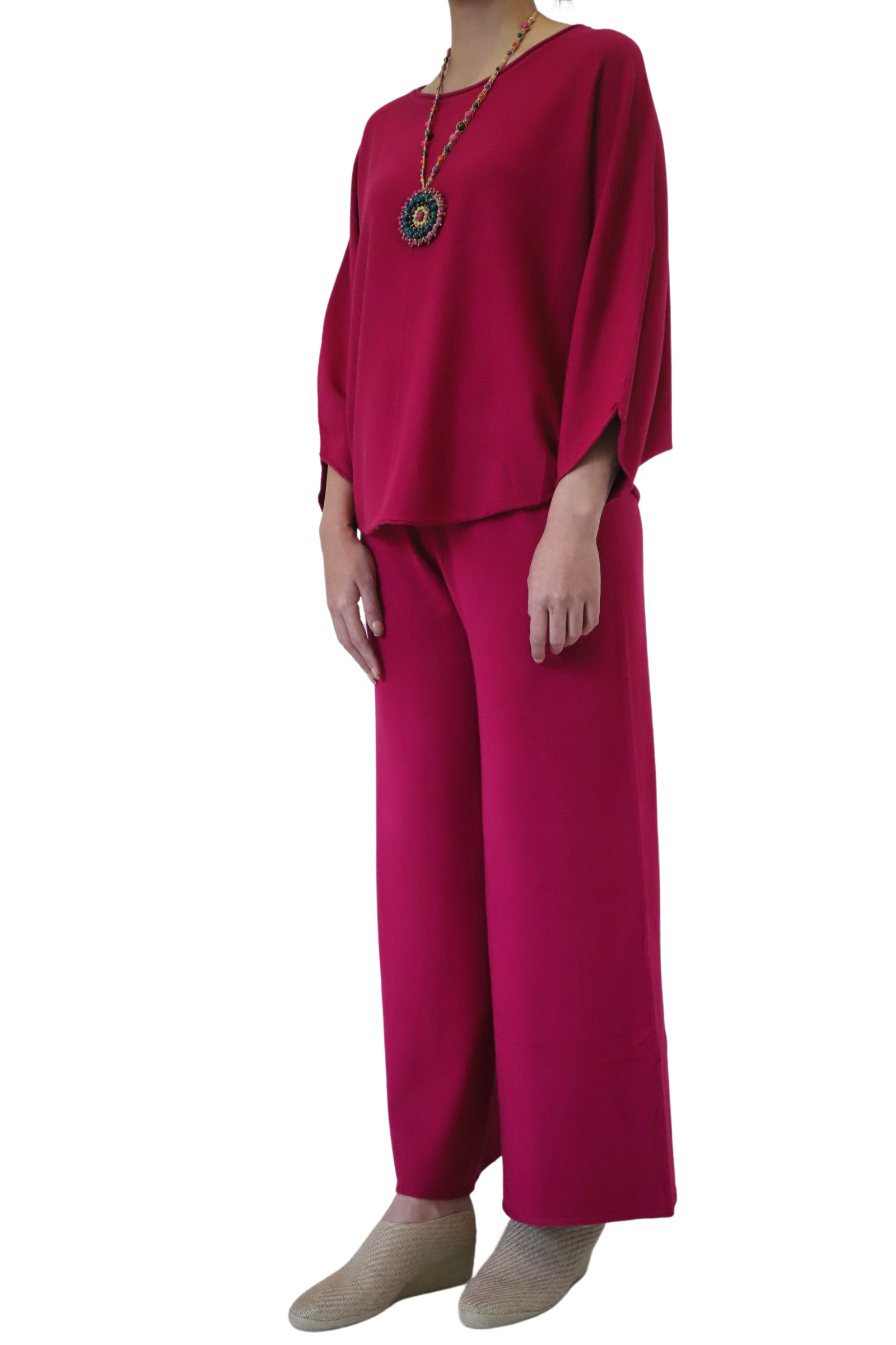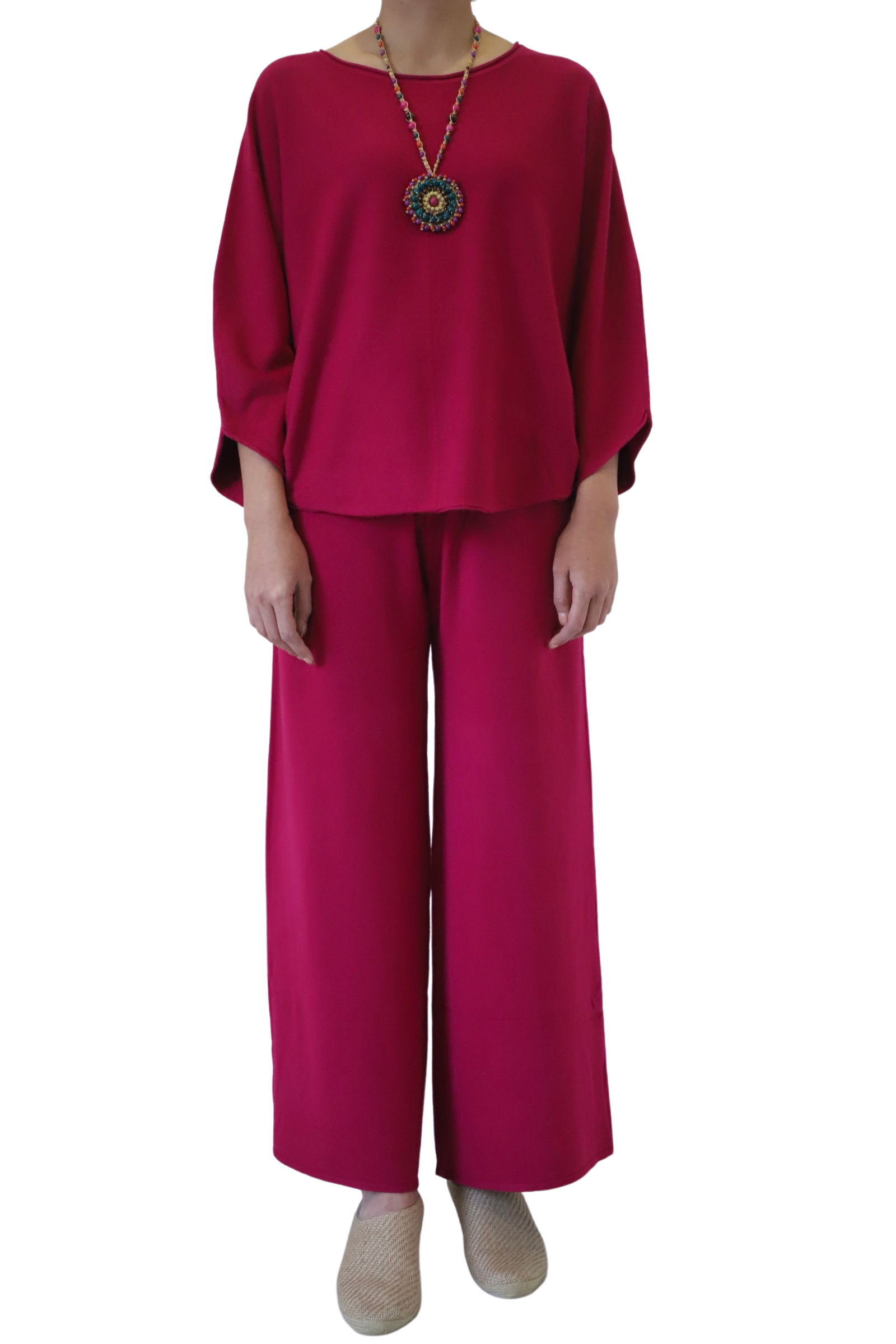 Este conjunto de lino en color fucsia es la combinación perfecta de frescura y estilo. Con un diseño elegante y fluido, ideal para cualquier ocasión, resalta por su caída ligera y su corte favorecedor.